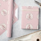 This Easter theme wrapping paper features a repeat pattern of a cute baby bunny hugging a mauvy pink easter egg with cream colored polka dots. The bunny and name are encircled in brown and set against a mauvy pink polka dot background. This is a great design for Easter but would be cute gift wrap for other spring days.