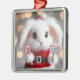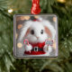 Bilden skildrar en festlig scen med en vit kanin som huvudhuvudrollsinnehavare, klädd på ett skickligt sätt i en röd Santa kostym. Kaninen håller en candy cane i ena tass och en skylt som lyder "hoppy helgdagars" i den andra. Bakgrunden är suddig och har ett varmt, ljust ljus som ger en stämning av firande och helgdag.