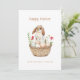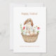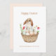 Cute Watercolor bunny med basket av färgstarka ägg och vår blommor Glad påsk-hälsning-kort. Ett enkelt Påsk-kort har ett Faux guld kor du kan personalisera med ditt meddelande och namn.