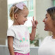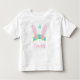 Rosa bunny öron med en söt teal blommigt tiara gör en söt Påsk-födelsedag småbarn t-shirt. Anpassa med ditt barns namn och åldra med söt skrift.