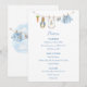 The menu features a sweet watercolor clothesline strung across the top proudly displaying tiny, adorable items, each featuring a cute bunny dressed in blue in a soft watercolor style. The back features the clothesline motif and a soft cloud. Easily add your own details and change the font style, size color and placement if you would like to. This menu is a beautiful detail, inviting your guests to share in the "hoppy" anticipation of your baby boy's arrival!