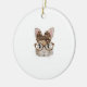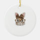 Cute Bunny Rabbit Face Leopard Coquette Bow Glasse Julgransprydnad Keramik