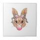 Cute Bunny Rabbit Face Leopard Glasses Girl Happy Kakelplatta