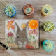 Ett sött fall/höstens hemdekoration, perfekt för ditt lantbruk, stuga eller rustiskt kök! Mot en lätt grått-bakgrund omges en bomullsbunny med ett sött leende av höst löv och gräs. Nyfiken teckning och design av Tuzi Williams.