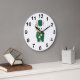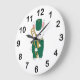 Are you a proud trombone player? Show your trombone pride with this clock! This clock features a cute white rabbit dressed in a green and gold marching band uniform holding a trombone. The clock also has black numbers.