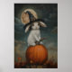 Cute Bunny Witch on Pumpkin Art Printable, Hallowe Poster