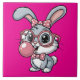 Cute Bunny with Glasses Blowing Bubble Gum Kakelplatta