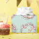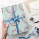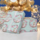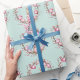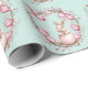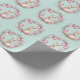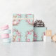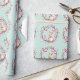 This wrapping paper features a pattern of cute young bunny rabbits holding pink Easter eggs. The rabbits are surrounded by natural wreaths of twigs and more pink and mauve Easter eggs. The background is a soft teal green watercolor look.
