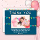 Tack för ditt vykort för flagga födelsedagsfoto. Tack för att du kom till ditt barns födelsedagsfest! Flaggor och ett foto i ram på en marin blå bakgrund - lägg in fotot i födelsedagsfesten i mallen. Ändra tackmeddelandet om du vill och barnets namn.