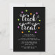 Inbjudan gäster till Halloween firande med de söta Bus eller godis-inbjudningarna! Designen har en lekfull, skokustypografi omgiven av färgstarka konfettpunkter i pulserande lila, kalkgrön och orange. Den omvända sidan visningar diagonalt rand med fetstil i samordningen av färg och lägger till en roligt och ett festivt tryck. Perfekt för både vuxen och Halloween fest, dessa färgstarka Halloween-inbjudan är fullt anpassade med din händelseinformation under en skrämmande bra.