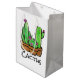 Tre söta kakti med rosa blommor i små terra cotta pots - en roligt söderut western design! Lägg till text eller ändra spännande text.
