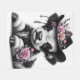 Illustration av en ung svart och vit ko, med en dekorerad hatt och blommigt, med naturens, oskuld:s och skönhetens teman i sin charmerande sammansättning och konstnärliga presentation.