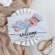 Fantastiskt kalligrafiskt foto-födelsemeddelande. Enkel att anpassa med din information. Kontakta mig via chatta om du har frågor om teckningen eller behöver anpassa den. OBS! Kontakta Zazzle Customer Care direkt https://help.zazzle.com/hc/en-us/articles/221463567-How-Do-I-Contact-Zazzle-Customer-Support- om du behöver hjälp med beställningar, frakt, produktinformation osv.
