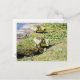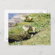 Cute Canada Goose-gässling, plockar blomman. Vykort.