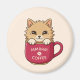 Cute Cartoon Cat Coffee Mug Beige Custom Text Magnet