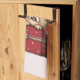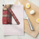 A kitchen towel with a cute drawing of a little kitten poking its head out of a gift box.