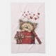 Cute Cartoon Kitten in a Box with Hearts Kökshandduk