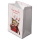 Gift bag with a cute drawing of a little kitten poking its head out of a gift box.