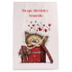 Box is wrapped in red, and a bow with a little hearts pattern.