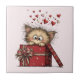 Cute Cartoon Kitten with Hearts Kakelplatta