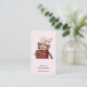 Business card with a cute drawing of a little kitten poking its head out of a gift box.