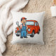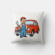 Cute Cartoon Mechanic with Red Car Illustration Kudde