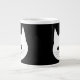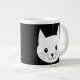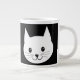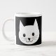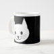 En söt bild av en vit katt ansikte mot svart bakgrund.