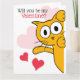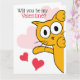 En söt katt som frågar, kan du vara min Valentine? Insidan säger: i kärlek, du, kysser mig nu och matar mig. Lovable pet tecknad i en orange/gult färg med stort öga och rödaktigt rosa. Donna Leger är unik och originell i teckning.