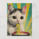 Cute Cat Eating a Bowl of Noodles Vykort