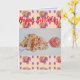 Cute Cat Ginger Tabby Blommigt Birday Art Card Kort
