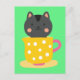 Cute cat in tekopp tecknad on mynt vykort