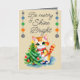 Cute cat & Julgran be merry kräm grått Helgkort