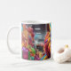 Mugg har en färgstark tecknad på den.