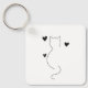 This illustration showcases a stylized cat silhouette, drawn with a single continuous line that flows smoothly from the head through the body and tail, creating a graceful curve. The cat’s form is complemented by three hearts of varying sizes, positioned strategically to suggest companionship. The design contrasts starkly against a plain white background, emphasizing the simplicity and elegance of the black lines. The minimalist style gives the piece a modern feel.