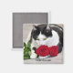 Cute cat med röd ros magnet