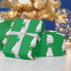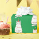 Festiv radbrytning har hand plockade söt vit katt med en sträng av jul ljus runt dem på gröntens bakgrund