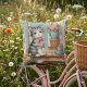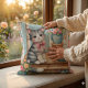 Cute Cat on Porch with Flowers & Patchwork Kudde