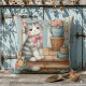 Den här charmerande designen har ett vackert grått tabby katt med starkt ögon och en rosa gingham-buske, sitta sött på ett rustiksfläkt omgivet av vismdetaljer. Den mysiga kottagecoreten kommer till liv med mjuka pastellliknande blommigtar i phögare i vintage-stil, vävda basket och kvaint skor som vilar på träfotsteg. Inramad av ett färglöst lapptäcke gräns känns hela scenen som en ögonblicksbild av en fredlig morgon i vår i ett härligt bostad. Perfekt för alla som ritas på pastelldekoration, shabby chic elegans eller värmen i nostalgiska landskapsbilder, ger den här teckningen en känsla av bekvämlighet och vänlig glädje var den än visas. Den mjuka vattenfärgskonsten stil och de invecklade detaljerna gör det idealiskt att framkalla vårbesvär och en känsla av långsamt och mysigt liv. AI skapade teckningar.