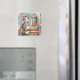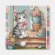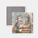Cute Cat on Porch with Flowers & Patchwork Magnet