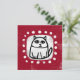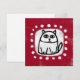 En söt dragen katt i svartvitt över en röd texturerad bakgrund omgiven av vita prickar.