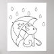 Tecknad illustration av en söt katt sitta under ett paraply. Tillverkad för enkel färgning.