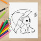 Tecknad illustration av en söt katt sitta under ett paraply. Ändrad för enkel färgning.