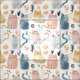 Cute cat vattencolor mönster Fabric
