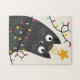 Christmas jigsaw puzzle featuring a cute cat with a tree-topper and Christmas lights.