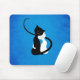 Cute cat mousepad med en tecknad som illustrerar två kattungande katter - en vit och en svart katt - i kärlek, på en grym, texturerad, blå bakgrund. Jag och jag kärlek ska rita katterna i kärlek. Dessa två katter kramar varandra precis som människor, förutom att de har svan, som också bidrar till krämen. Det här är en väldigt söt kattillustration.