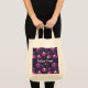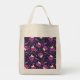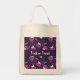 Tote-väskan med en hederlig Halloween-temad mönster. Katter i häxhattar, sitta på rosa pumpor med lila i bakgrunden.