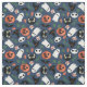 Cute Halloween-väv i svart, orange, vitt, marinblått och grönt med mönster av katter, pumpor, fladdermus, spöken, häxhattar med mera.