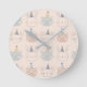 Cute Cats Rabbits and Bears Faces Pastel Pattern Rund Klocka