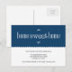 Den här söta förändringen av adress meddelande är ett sött sätt att meddela din familj och dina vänner om din nya adress. "vi har flyttat"-vykortet har en vit text som lyder "Hemsöt hem" mot en marin blå bakgrund.