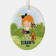 Personalisera Dated Cute Orange & Blue Red hair CheerLeader Girl jul Ornament satte på ett gräs med träd-bakgrund. Ostdekoration har en söt cheerleadership som håller pompommar med en megafon. En julklapp som säkert kommer att uppskattas i många år till komen.